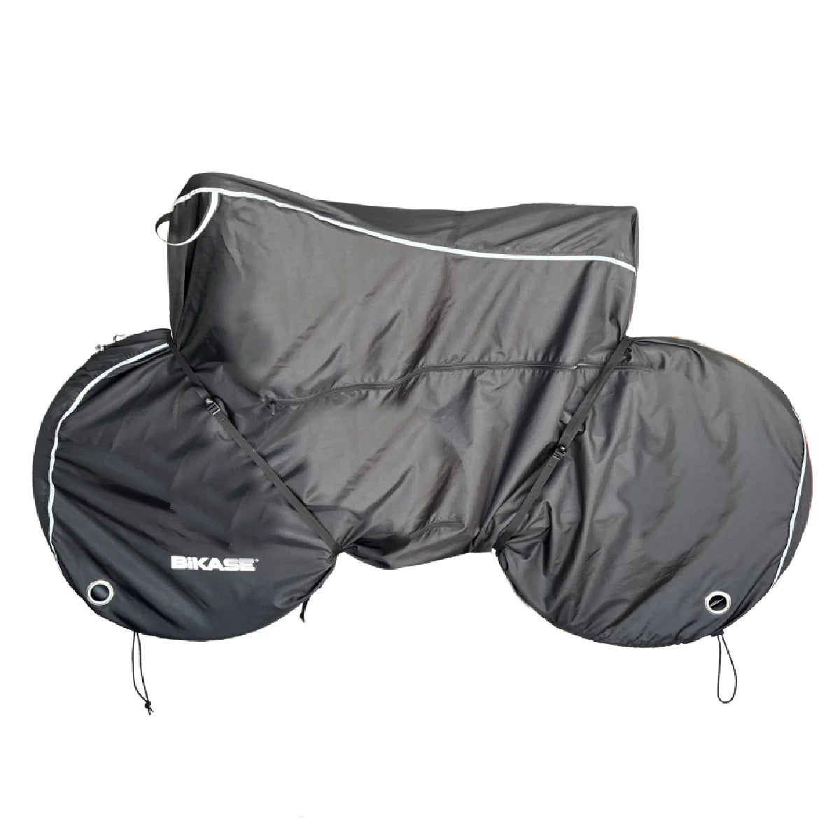 Ebike or Bike Cover to protect your bike from the elements. Made with 300D Ripstop Nylon with water resistant coating. Fits most ebikes, fat tire, and 29" wheeled bikes. -Cinch straps included to tighten cover against bike & heavy duty elastic drawstring -Zippered opening for easy access to battery and bike -Metal Grommets to use with bike lock -Reflective handles and trim -Convenient carry bag